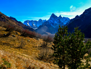 Неподалёку – ледник и вершина Базардюзю (4466 м), которая доминирует над округой.