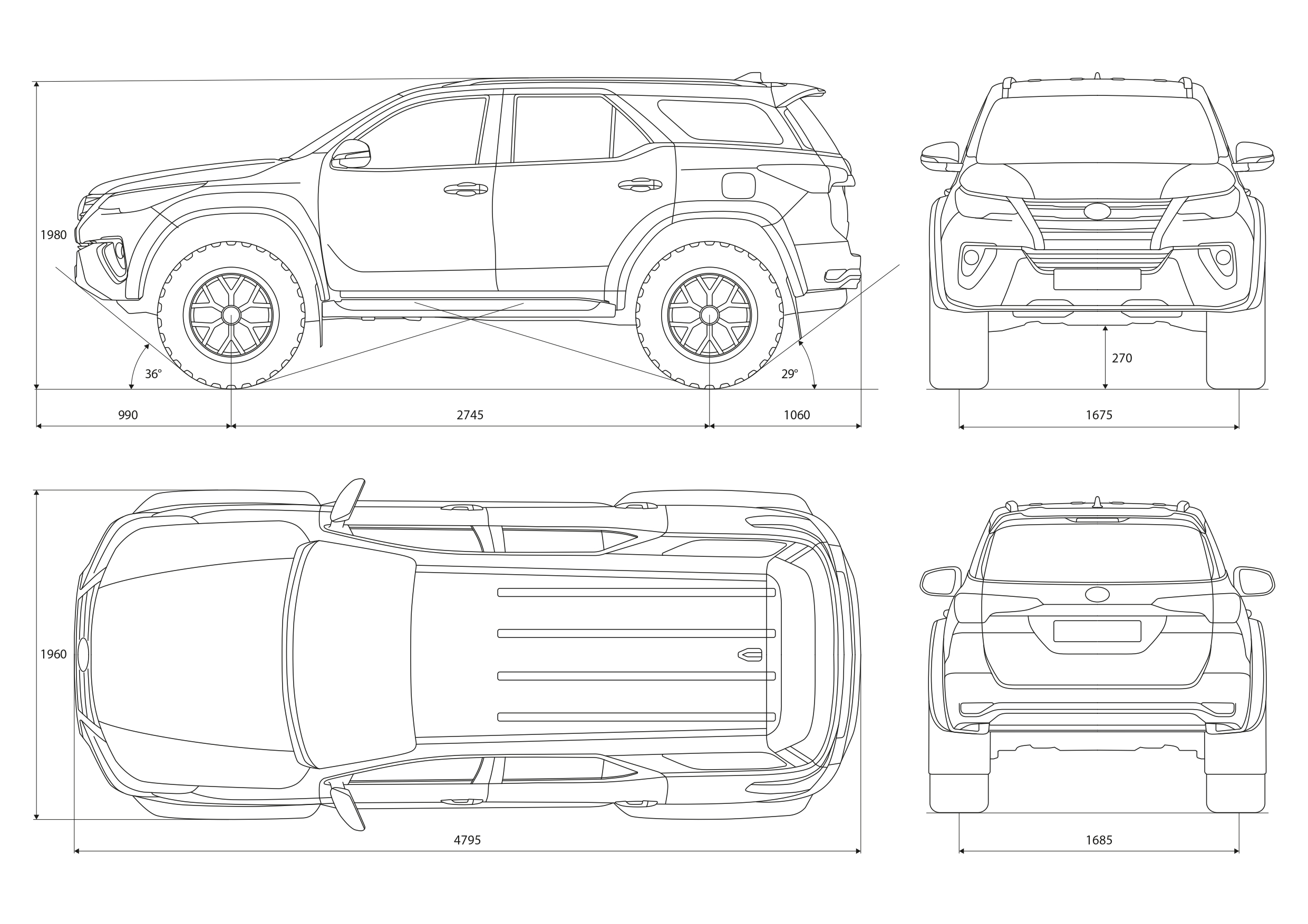 | Угол въезда, град. | 29 | 36 |